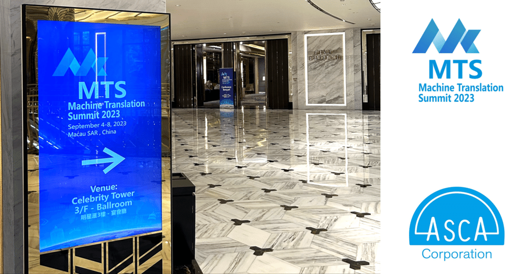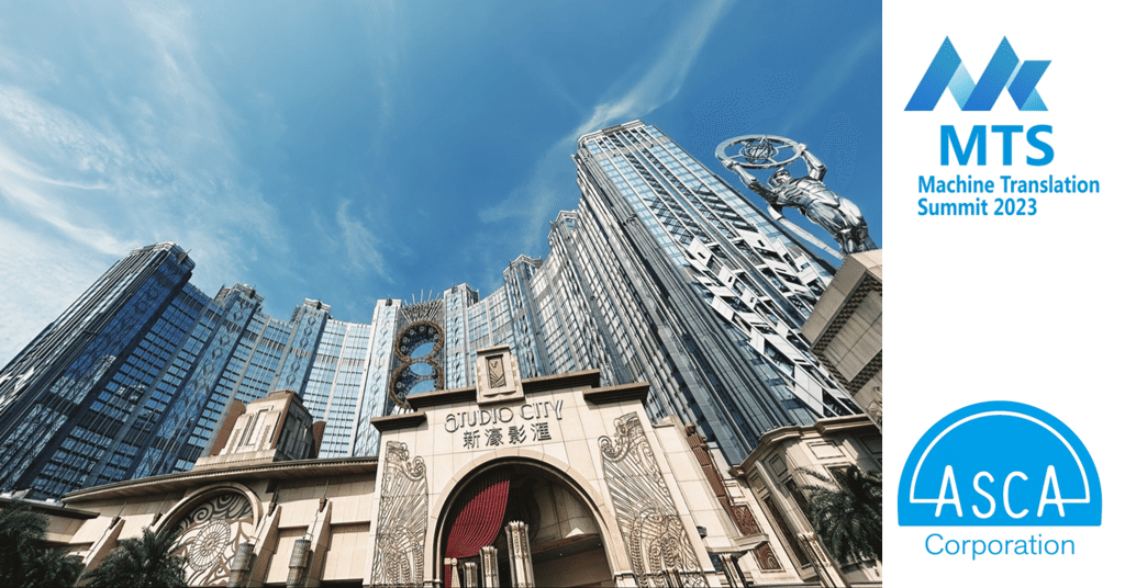 2023年9月4日~9月8日までの5日間、中国・マカオで開催されたMachine Translation Summit(以下MT Summit)という機械翻訳の国際会議にASCAから4名のメンバーで参加して来ました。