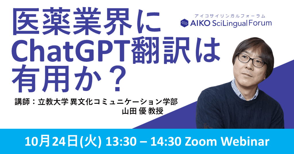 • 【Webinar】医薬業界にChatGPT翻訳は有用か?【10月24日(火) 】