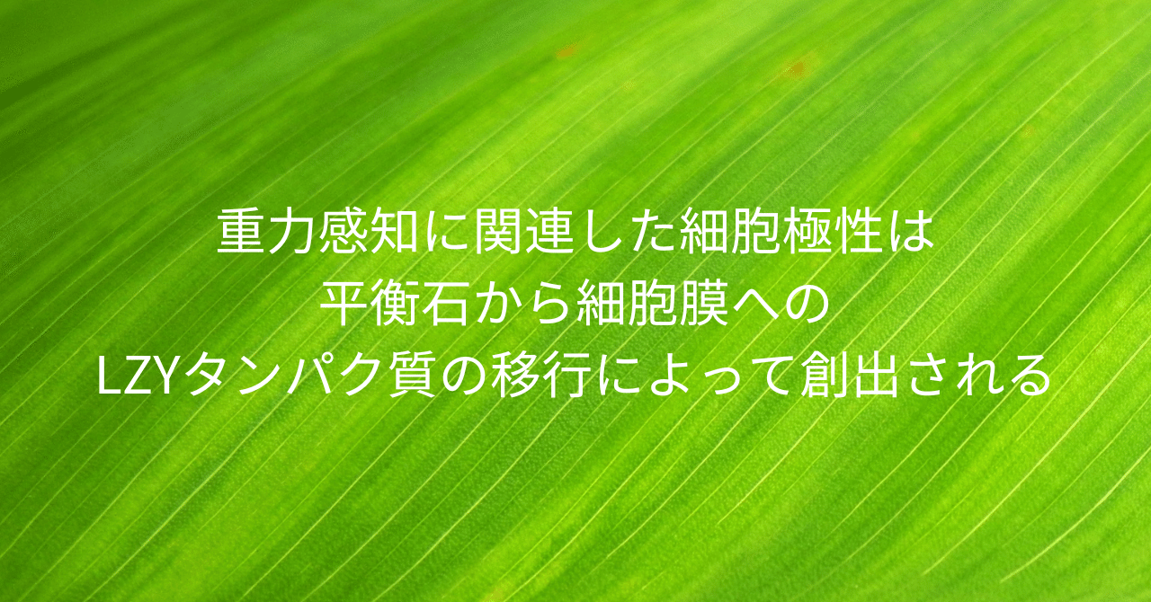 Cell polarity linked to gravity sensing is generated by LZY translocation from statoliths to the plasma membrane 重力感知に関連した細胞極性は平衡石から細胞膜へのLZYタンパク質の移行によって創出される