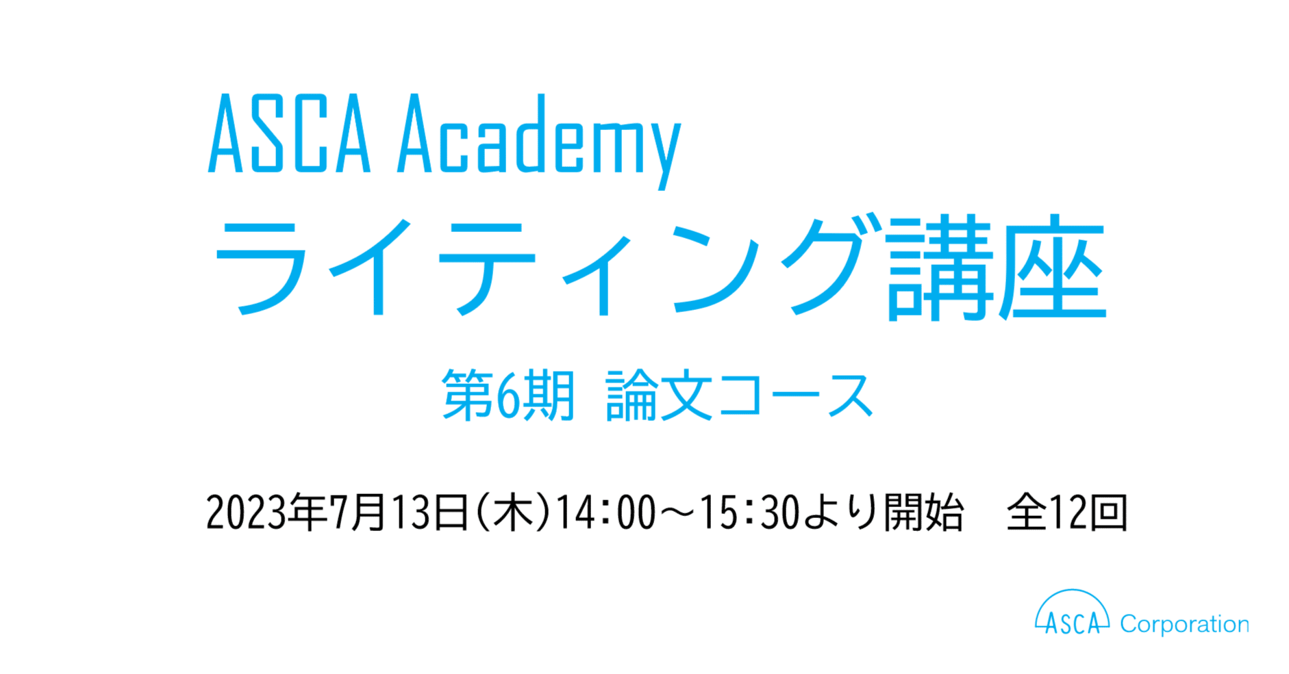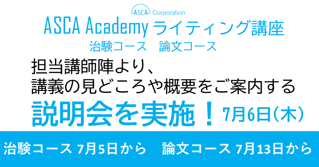 2023年7月より、医薬・サイエンス分野のライティング技術を学ぶASCA Academyライティング講座の第6期がスタートします。今回は「治験文書コース」及び「論文コース」を開催予定です。